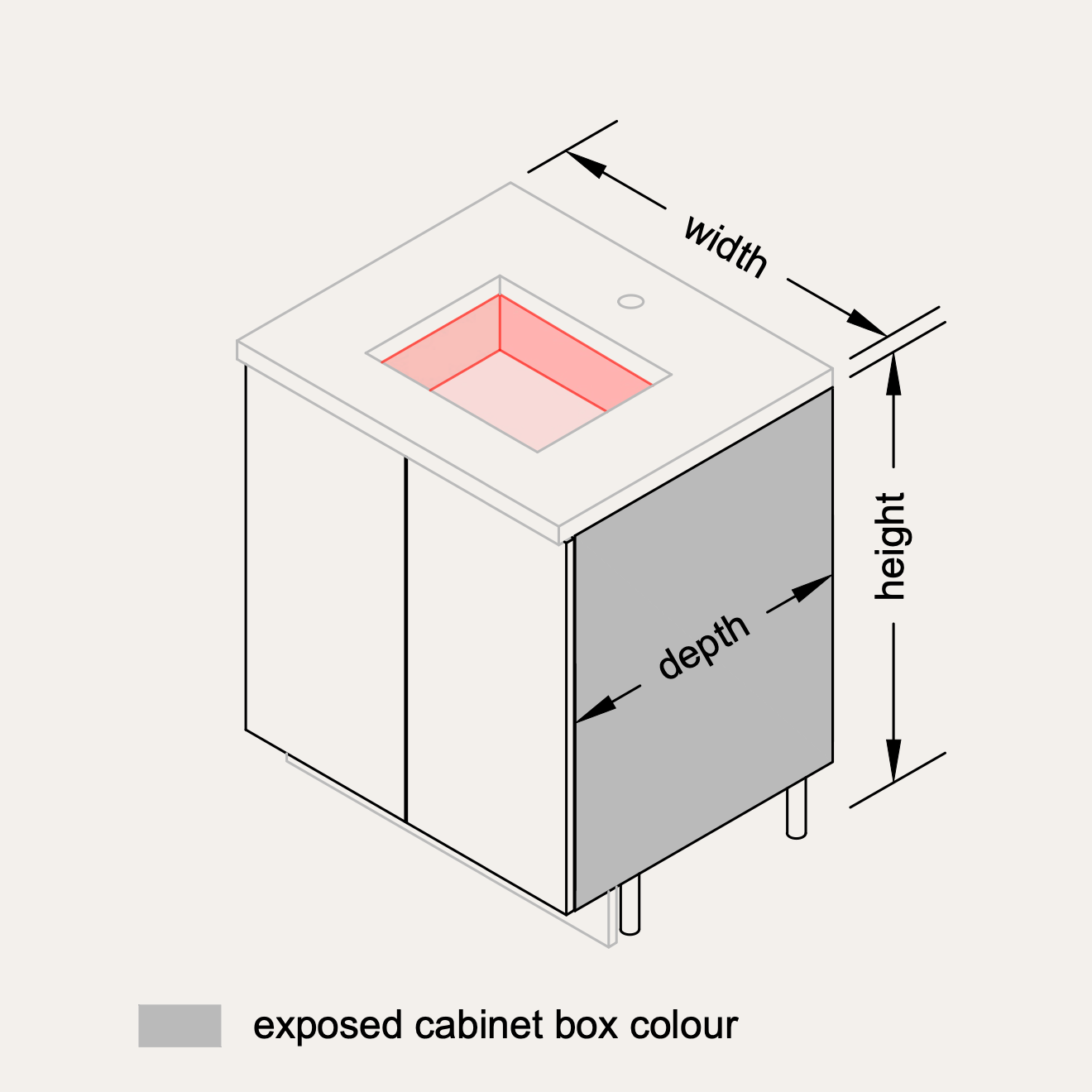 width refers to the width of the cabinet box.