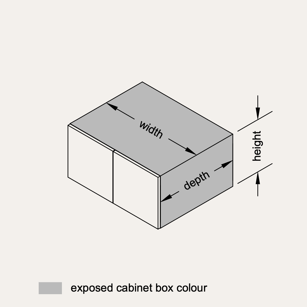 Note that the cabinet’s box colour is exposed on the bottom surface of the cabinet (in addition to side and top surfaces).