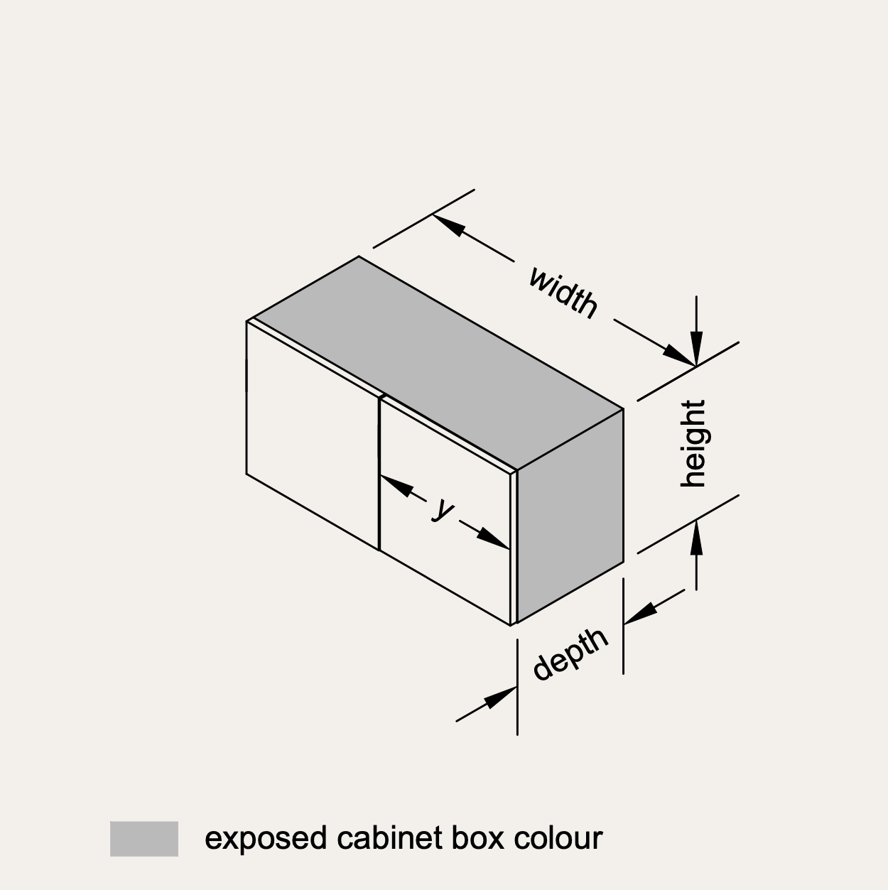Note that the cabinet’s box colour is exposed on the bottom surface of the cabinet (in addition to side and top surfaces).